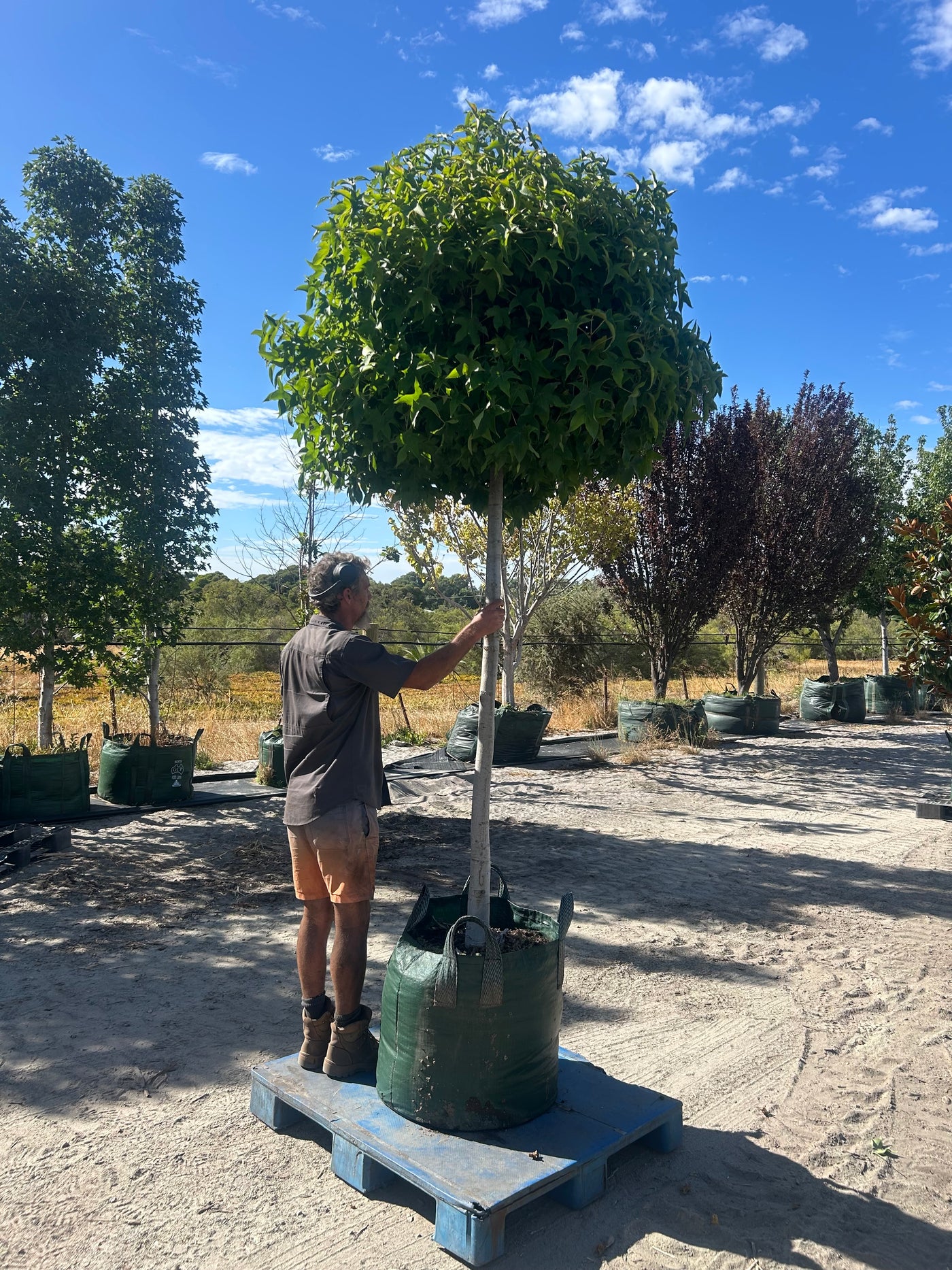 All the beauty of a Liquidambar in a compact size. Dense rounded head grafted onto a 1.8m tall standard.